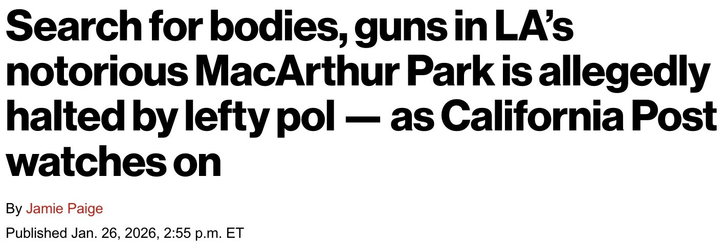 Councilmember Hernandez, you’ll remember, is waging a battle to declare the park healthy and safe. She says it’s time to stop noticing how repulsive the place is, so the city as a whole bows to the weight of her wisdom. City park rangers threatened the sonar team with arrest if they put their equipment in the lake, ironically-but-not-that-they-noticed surrounded by the daily filth and degradation that no one ever does anything to stop. Smoke meth in the park, good; search for guns and bodies in the park, straight to jail. Here, at last, the secret is revealed, and we know what Los Angeles is willing to protect.