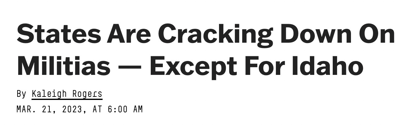 Shockingly, the Idaho legislature chose 2023 to begin an effort to eliminate its law against private militia activity.
