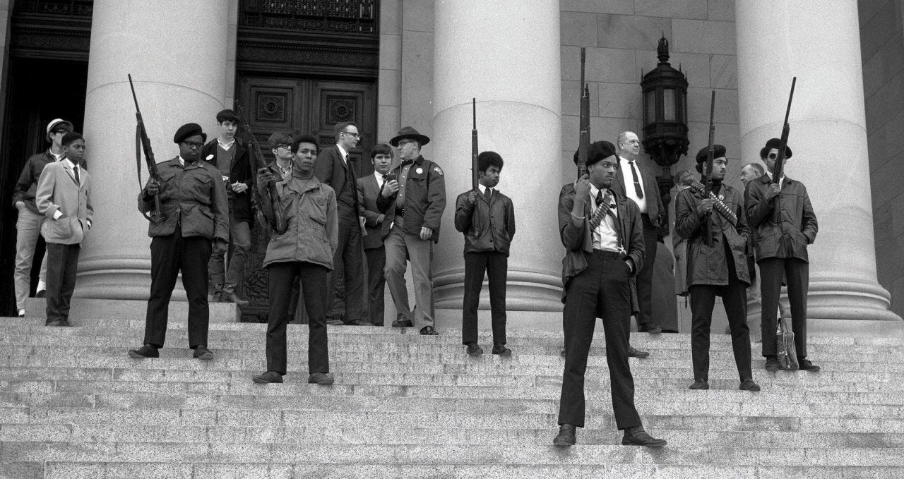 Or look at this infamous historical example from 1967, when a white nationalist group called the Black Panthers from the far-right bastion of Oakland stormed the California state capitol and walked onto the floor of the Assembly with guns, in the first recorded example of a TRUMP MAGA RALLY: