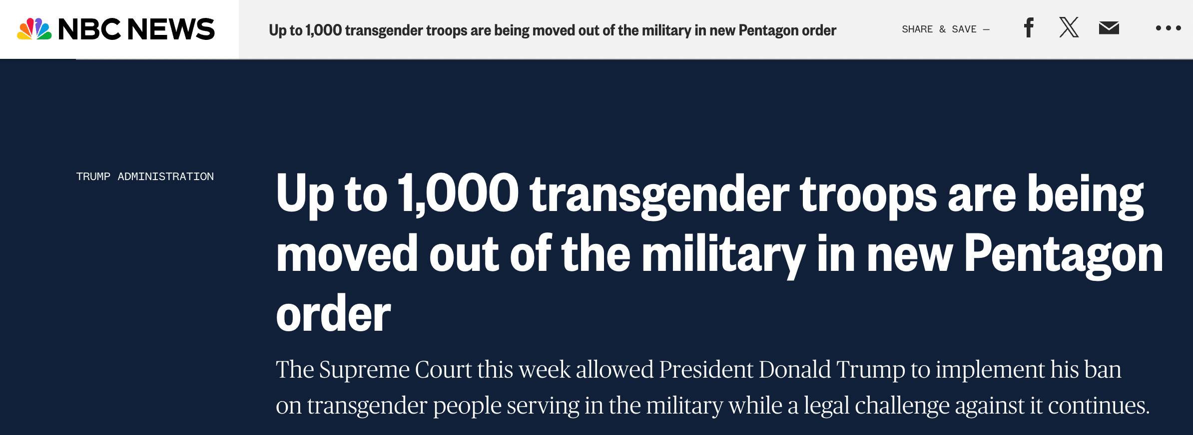 Here’s the New Republic in late November, under the calm headline, “Here’s How Much Trump’s Extreme Transgender Ban Would Damage Military.”