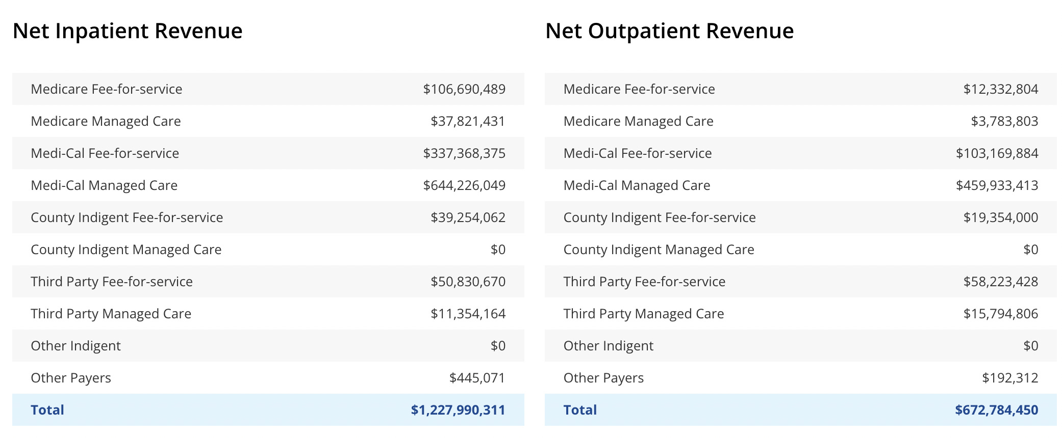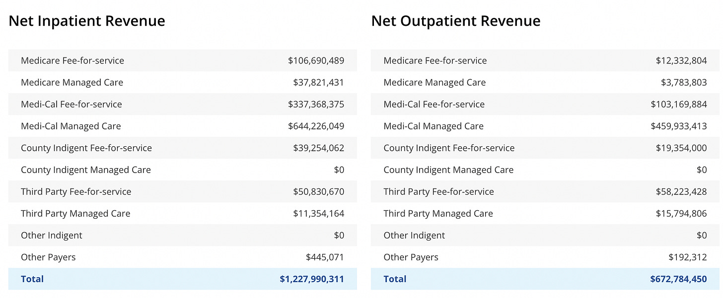 In the first version of this post, I said to add zeros to the numbers for the LA County hospital. I misread the numbers, because my brain went on vacation. Apologies, and no, Los Angeles doesn't have a hospital that spends a trillion dollars a year.