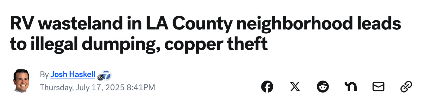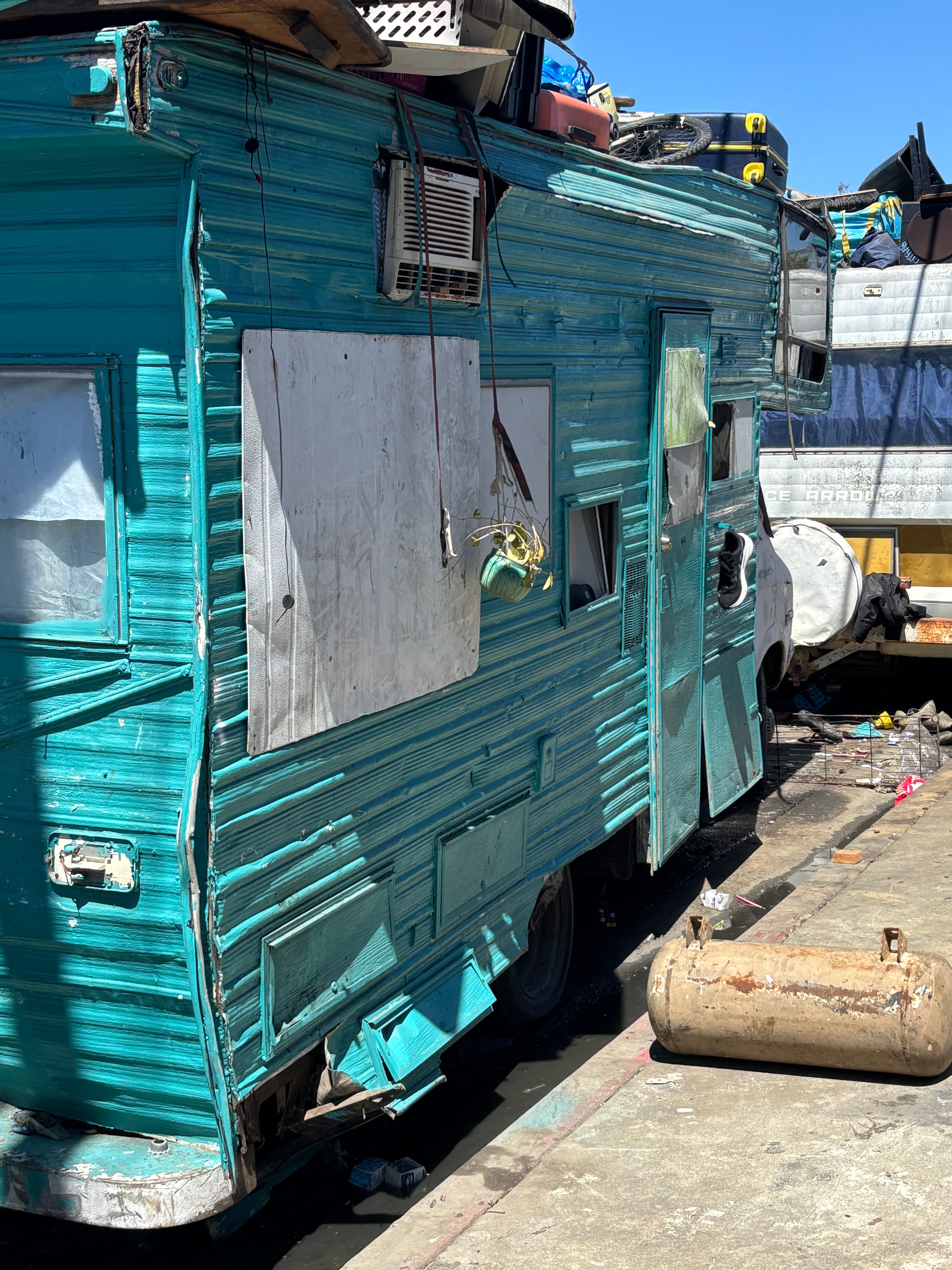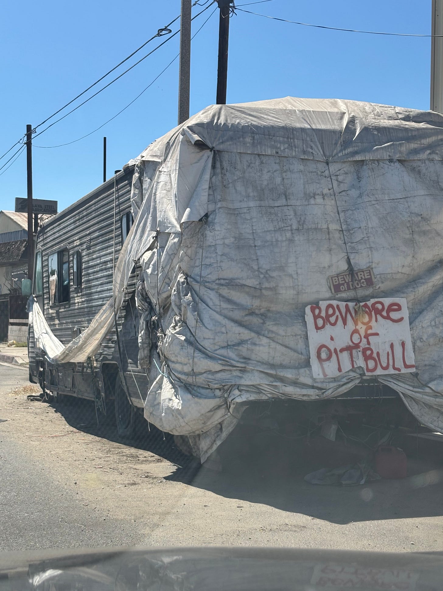 If you enjoy seeing this, and WHO WOULDN’T, take a long Sunday drive on Avalon Blvd. between Compton and Downtown Los Angeles. It’s like the French Riviera of progressive Los Angeles. When the RVs burn, by the way, the ruined shell gets towed away, but the stuff that was inside the shell stays…well, pretty much right there. For everyone to enjoy!