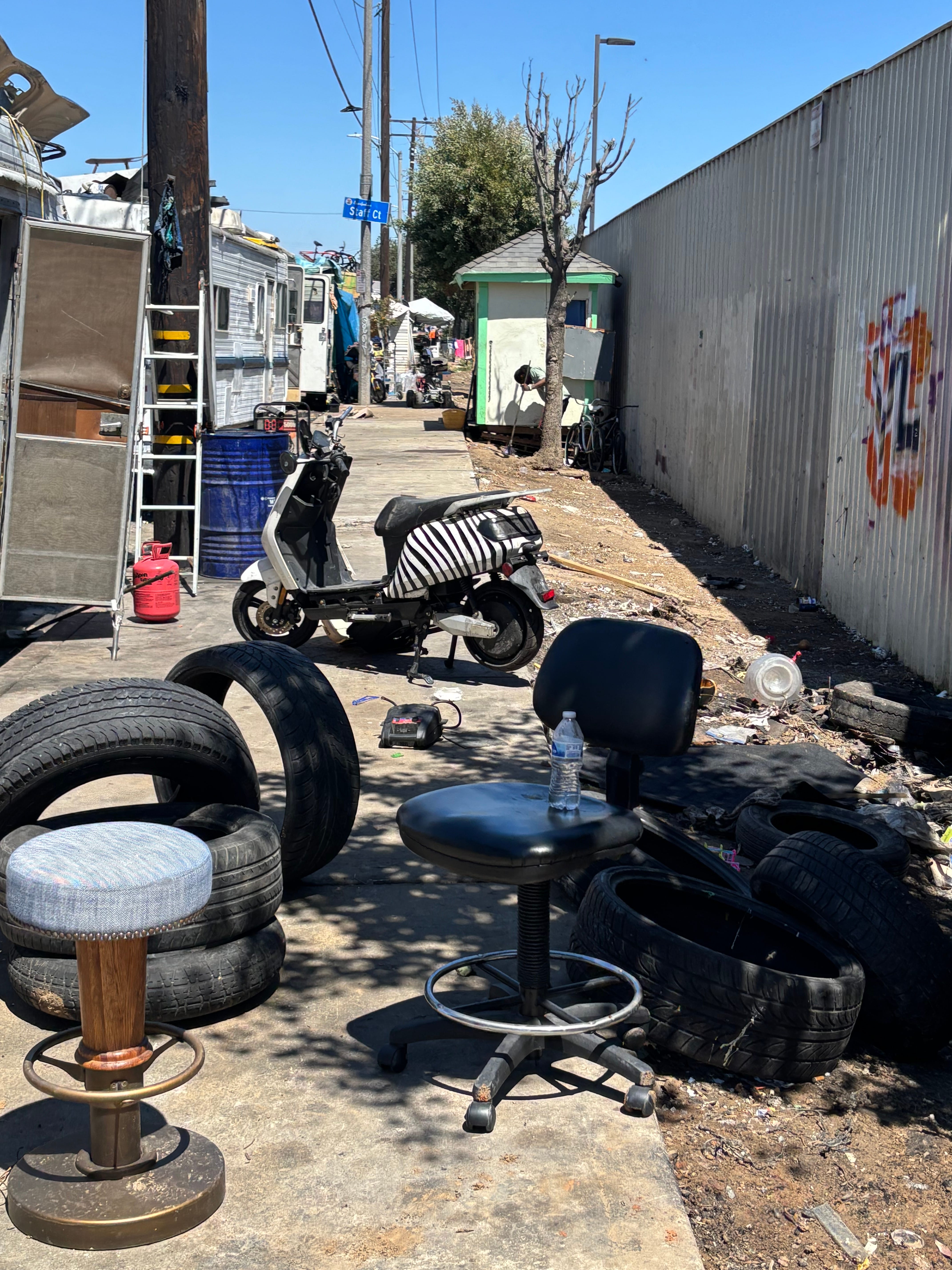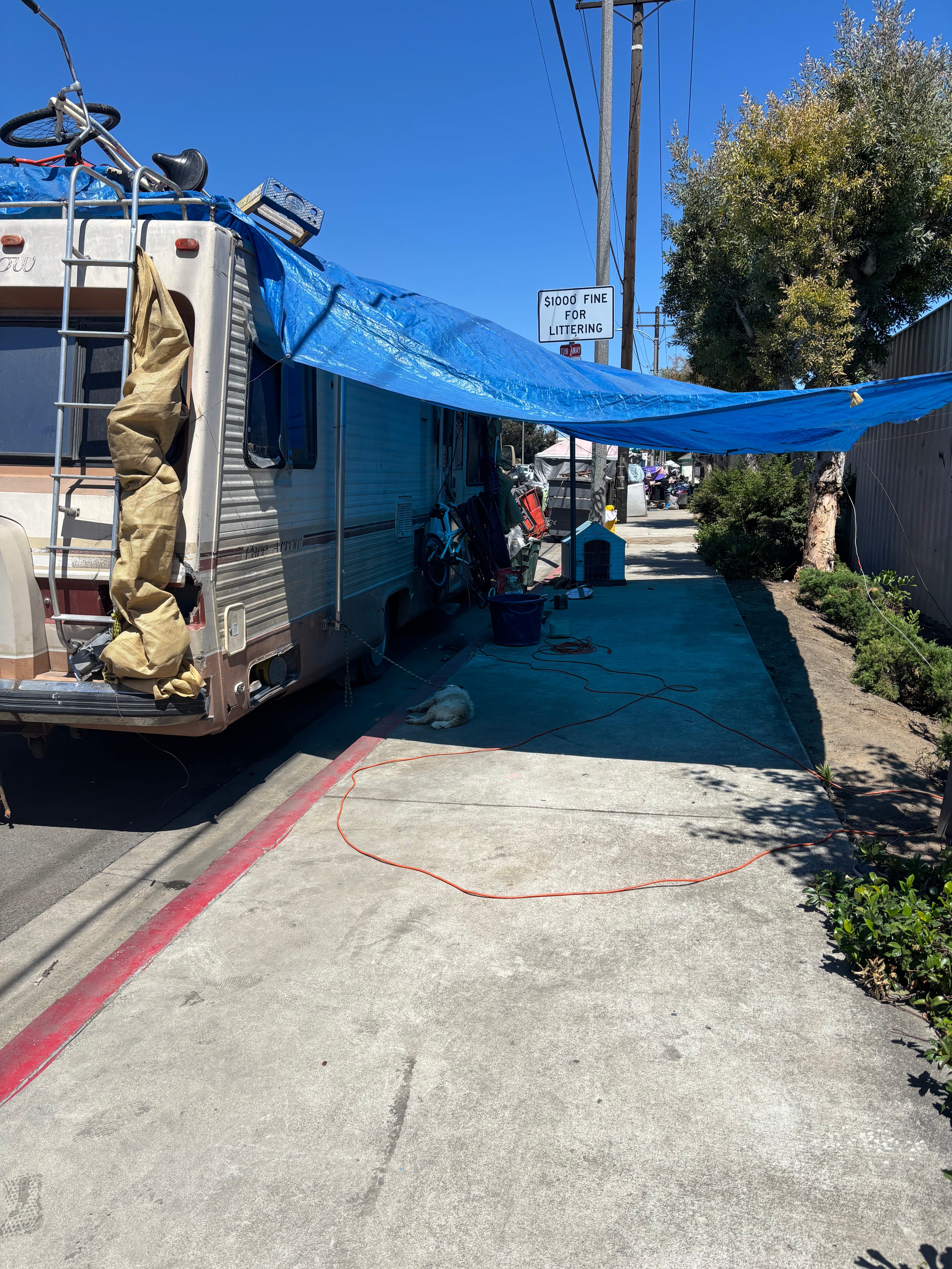 Those orange extension cords run into the neighboring commercial properties, which are given an opportunity to help, or are sometimes wired into the streetlights. “$1,000 fine for littering,” by the way, so for sure don’t do that here.