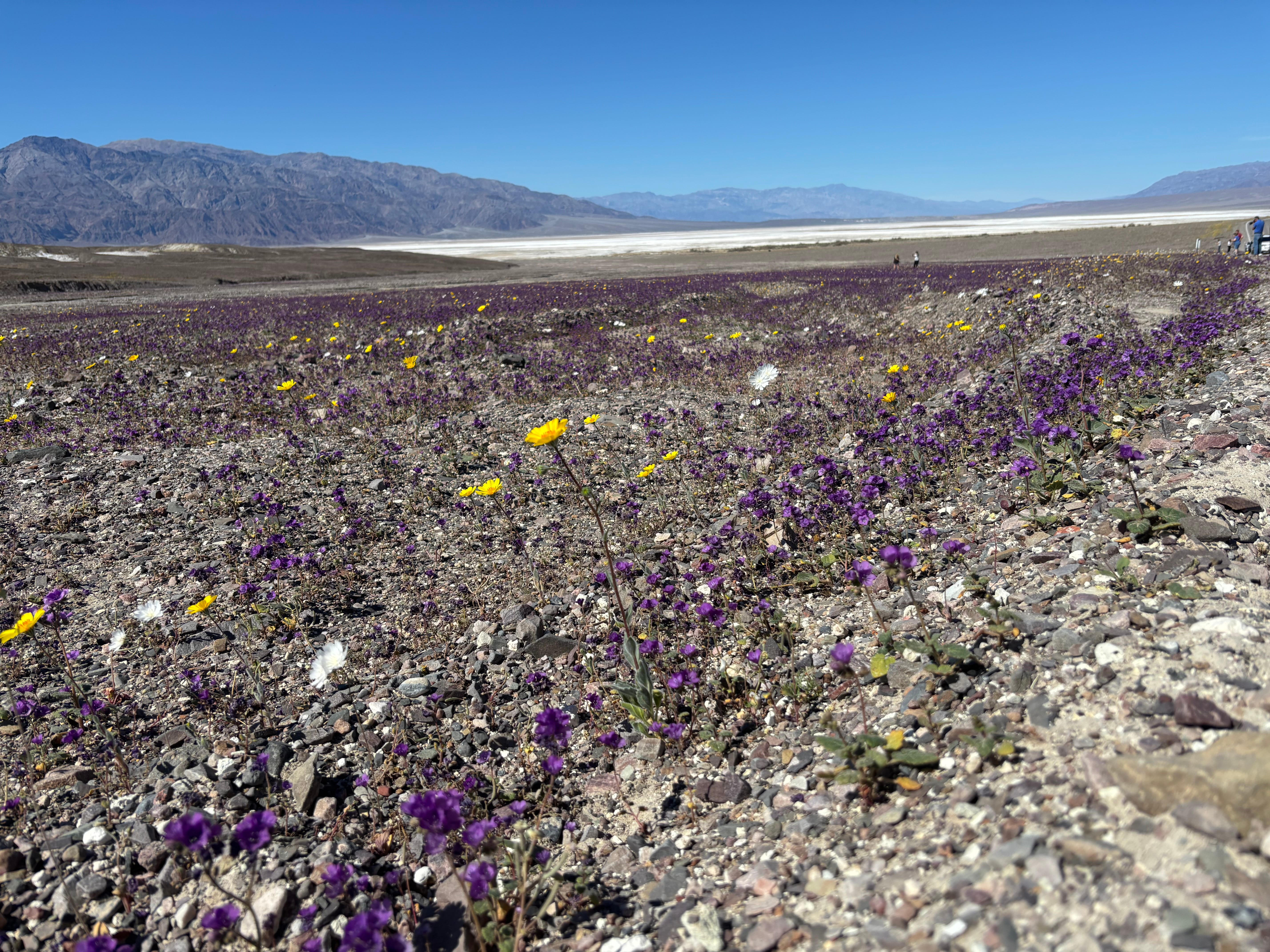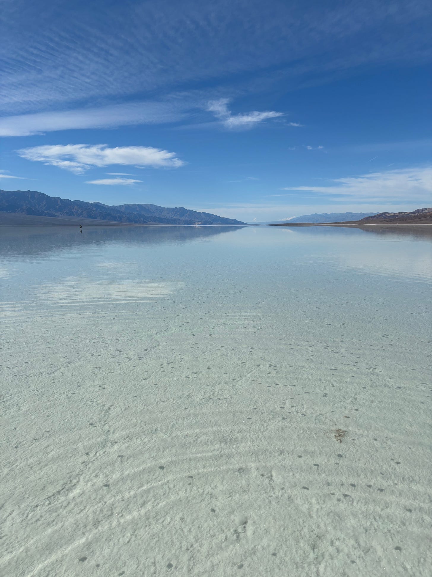 If you’re anywhere within a day’s drive of Death Valley, it’s a great time to be there. Badwater Basin is a very large shallow lake, and will be for a while. How often can you walk a mile in a lake?