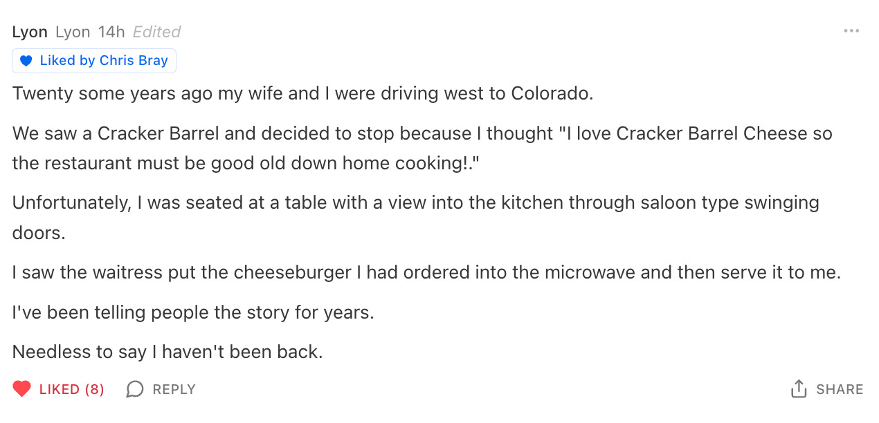 The Cracker Barrel problem had solutions, and it’s interesting what they didn’t think to do.