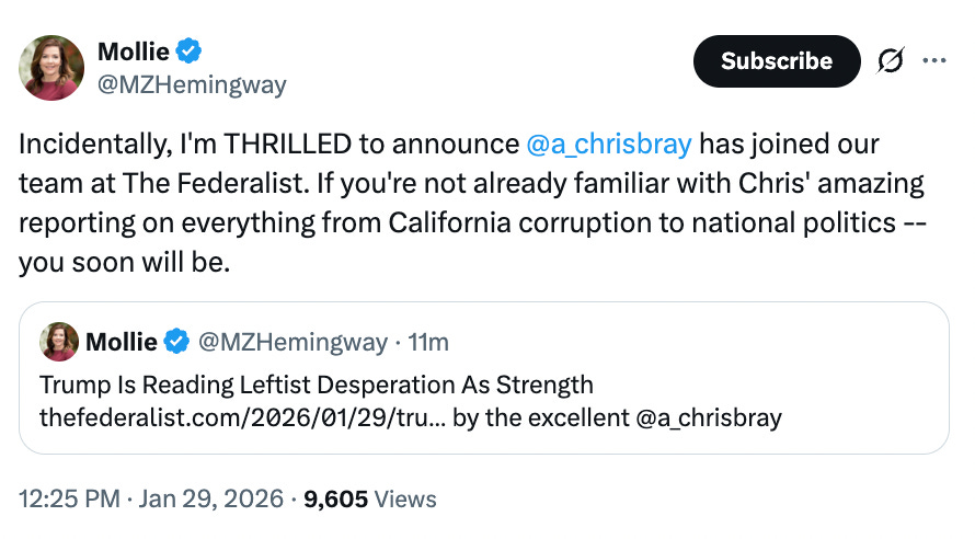 Congrats, Chris! The Federalist has gained a star. Glad to see more national coverage of the Cali commissars with the new California Post as well.