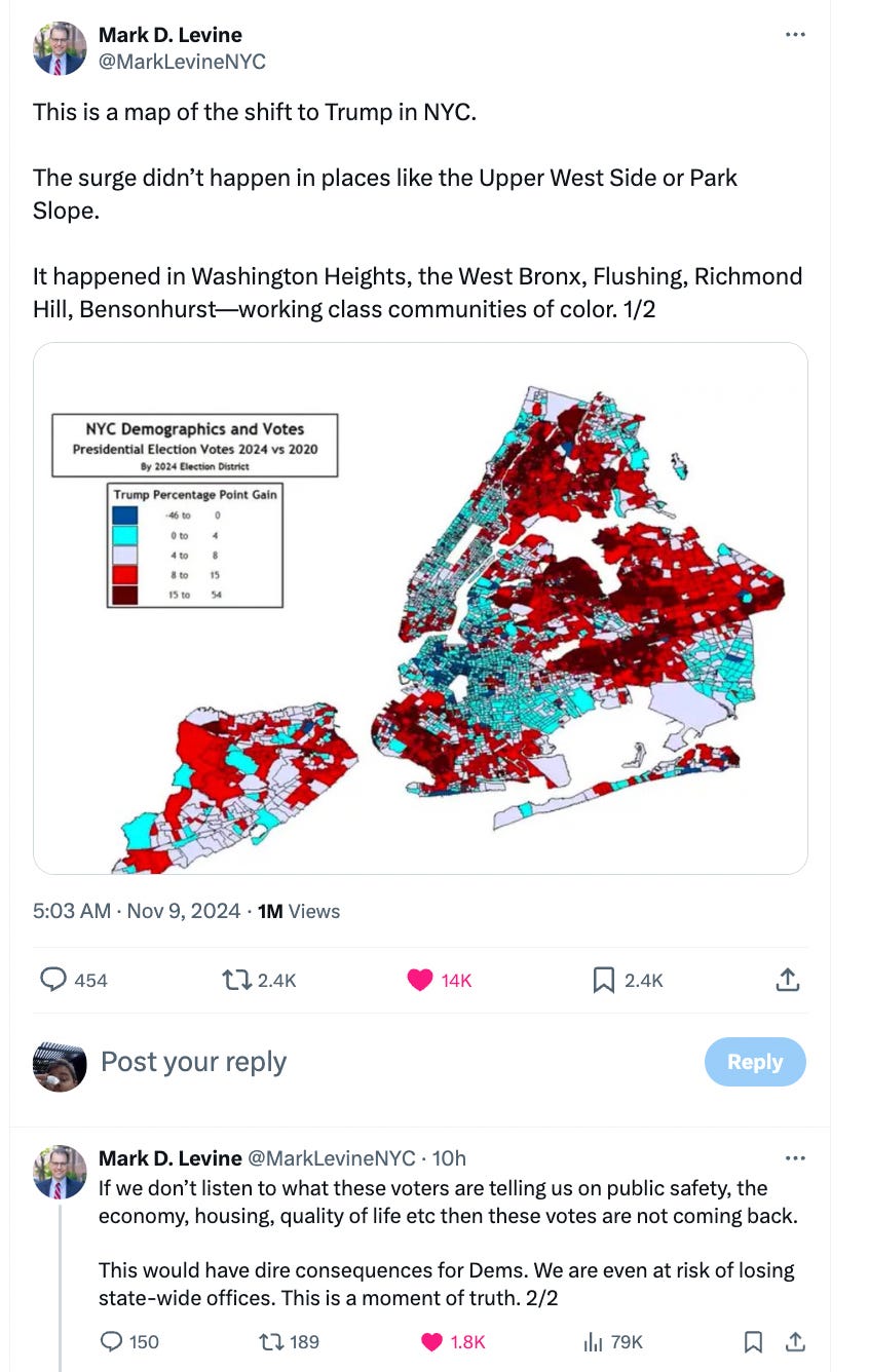 The only Democrat I’ve seen this week who has taken his head all the way out of his ass is Manhattan borough president Mark Levine, who is Obama-school progressive down to his bones: