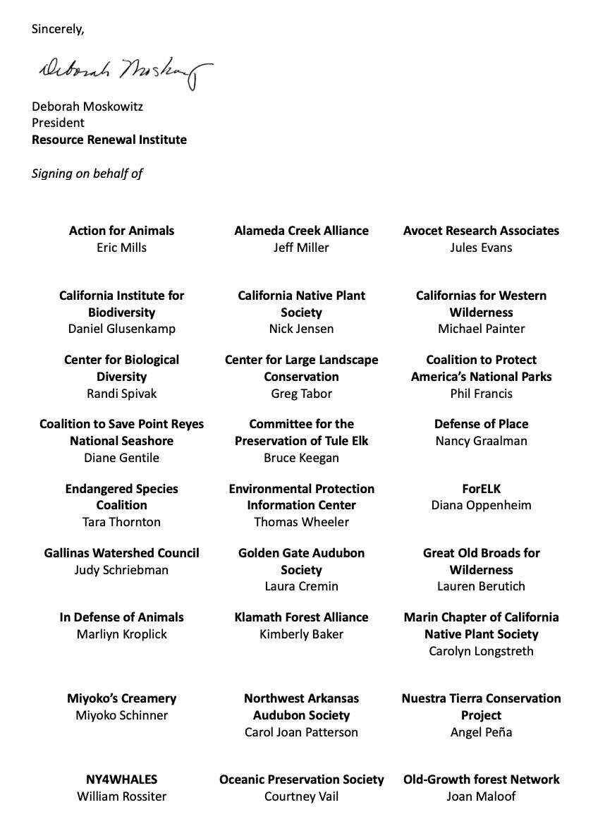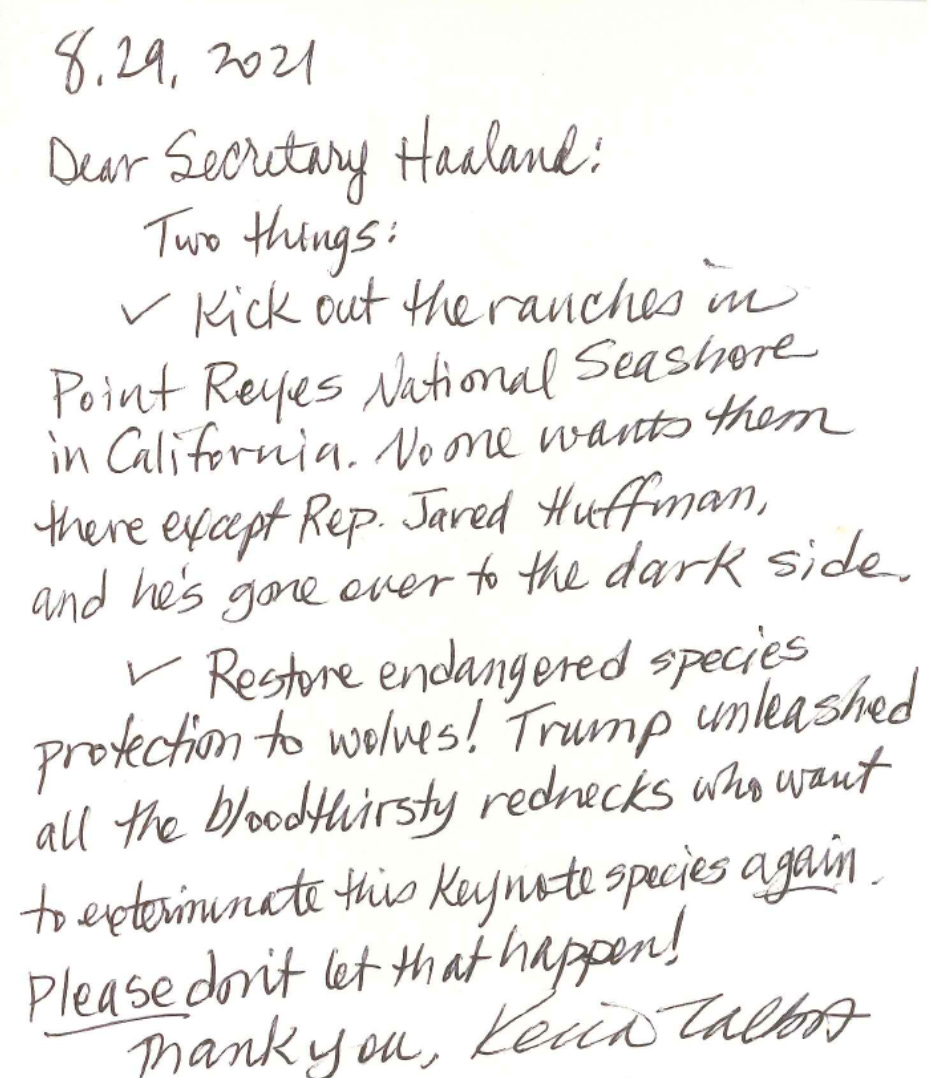 Last week I got my second batch of documents about Point Reyes from my other FOIA request, the one I filed with the Department of the Interior — the parent agency of the NPS. These documents show who was talking to Biden-era Secretary of the Interior Deb Haaland as park service managers wrote a new management plan for the national seashore that proposed the continuation of ranching, before the lawsuit was filed. It’ll be tough, but try to guess what percentage of messages to Haaland were pro-ranching. Here’s the whole fairly short package of documents as a PDF file, if you want to wade through it: