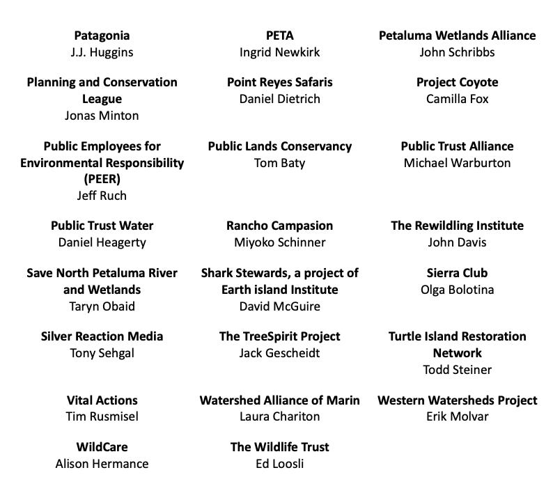 Still, there are some major players on that list, including the Sierra Club and the private corporation Patagonia, which sometimes appears to sell outdoor products as a sideline for their activism. So the first time the Secretary of the Interior heard about ranching at Point Reyes, she heard that every group under the sun absolutely hated it.