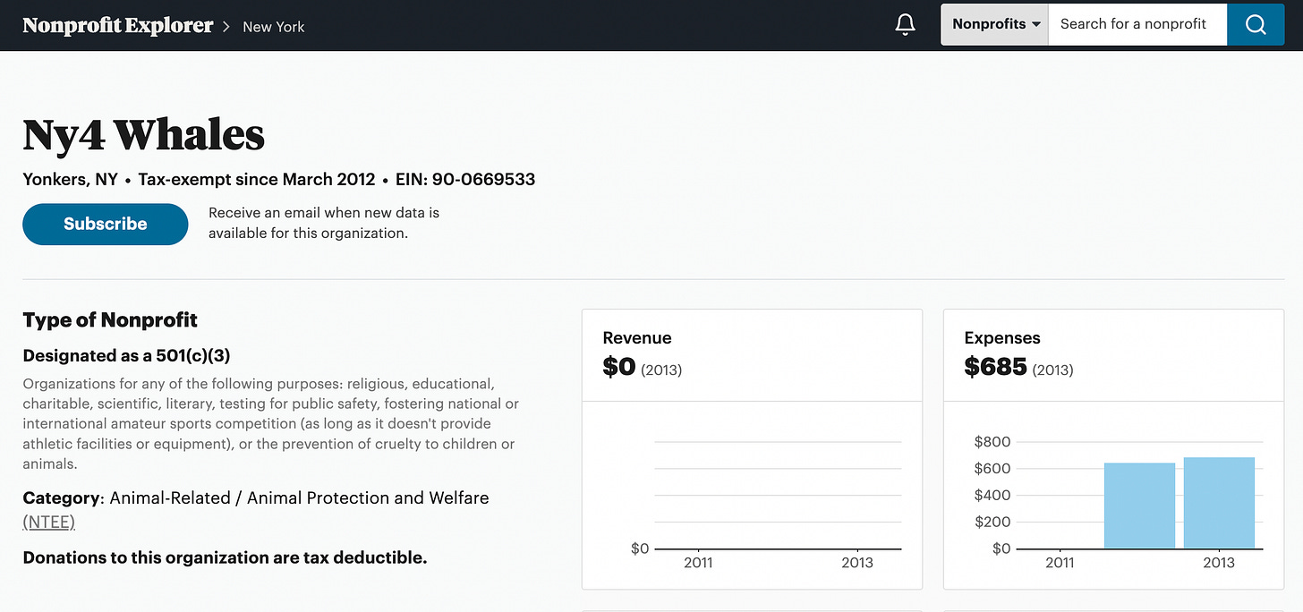 And yes, that’s the most recent financial reporting I could find for that group which included any actual numbers. They’ve been filing the abbreviated Form 990 postcard with the IRS since then.