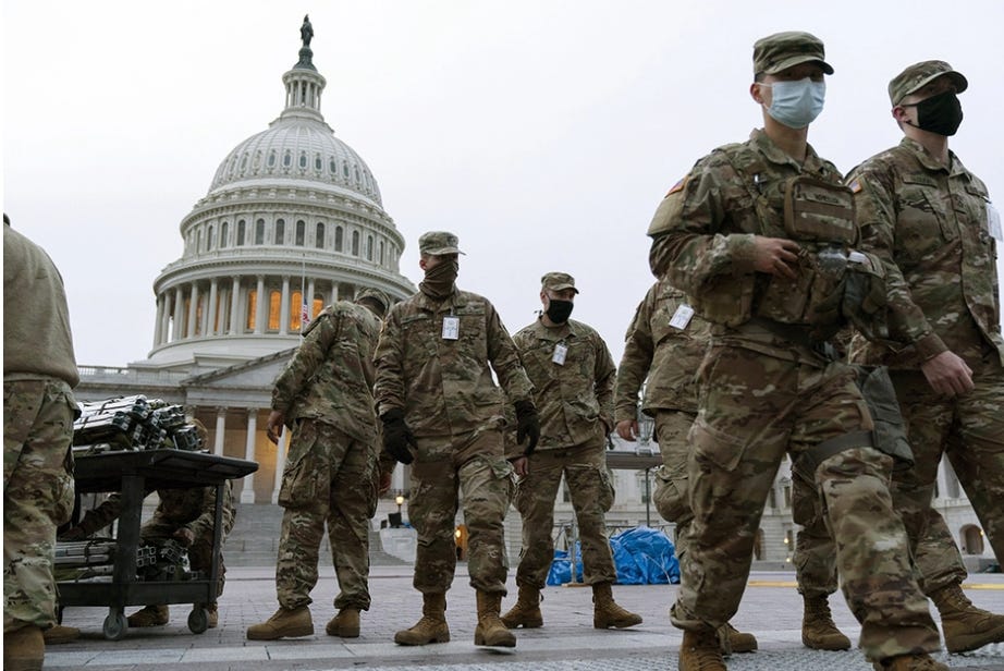Was that an equally valid argument in late January of 2021, when 25,000 National Guard troops were on the ground in D.C., a number that might be a little higher than the current 800?