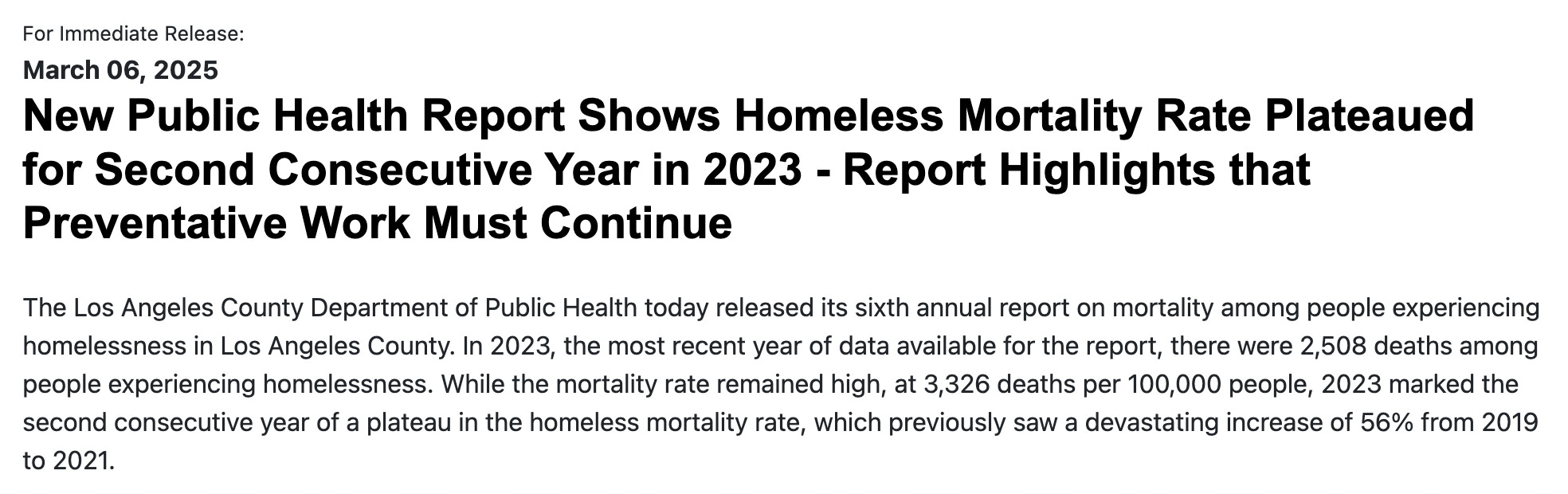 See, Donald Trump is very mean, and we need to stand up to his cruelty. We need to stand with the good person, the warm and decent leader, the kindhearted Gavin Newsom, who won’t tolerate meanness. Meanwhile, back on earth, a quarter of the nation’s homeless people live on the streets of California, in a count that now rapidly approaches 200,000. Several thousand of those people die on the street every year: