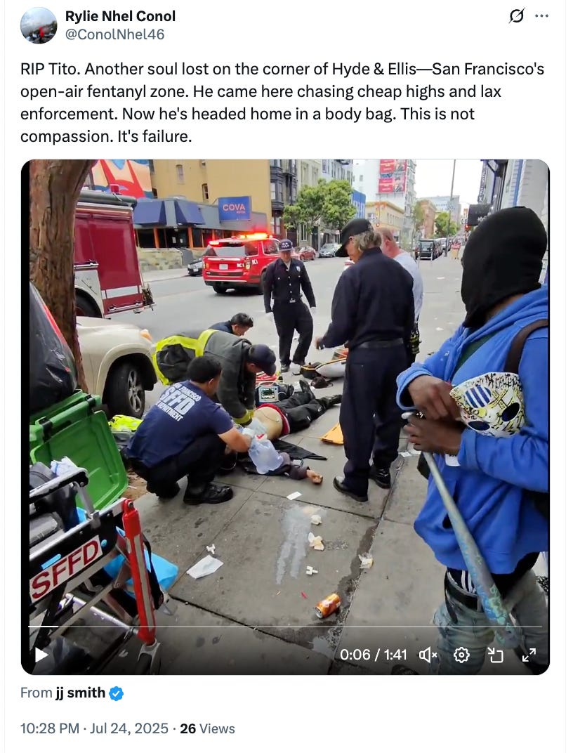 Outside of an actual fucking death camp, you can’t find many things darker than the darkest parts of California during the Newsom years. The misery and ruin aren’t obscure — they’re written plainly on the streets. Walk around in the right parts of Los Angeles or Oakland or San Francisco (or San Jose or San Diego or…), and you can see the death and the pain. As I’ve written before, the most significant political leader in Oakland is an activist whose activism is that he walks around so you can see the place: