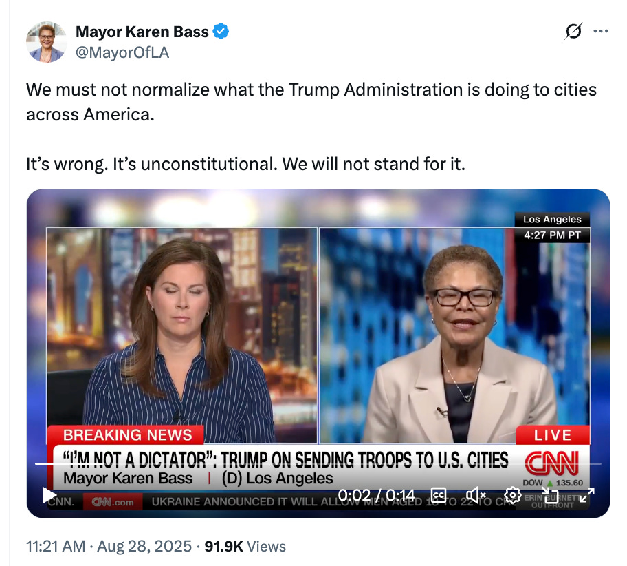 Meanwhile, the idiot mayor of Los Angeles masturbates in public about the ORANGE MAN (this is a screenshot, but click this link to hear her babble her pablum):