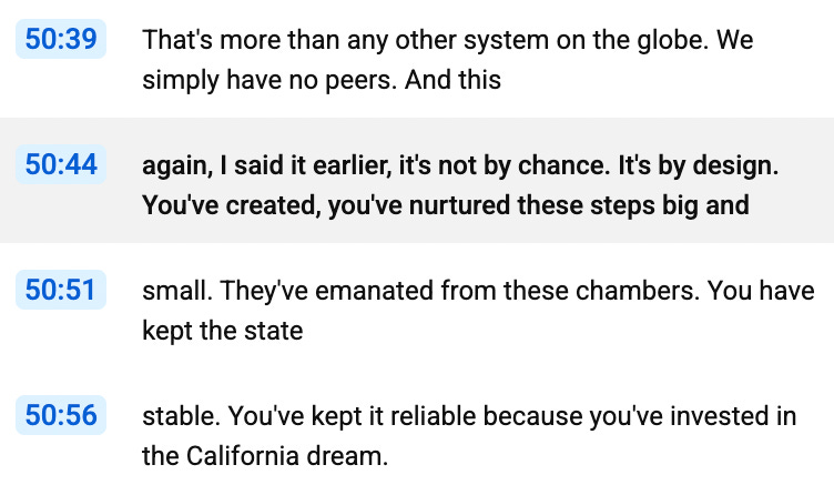 California simply has no peers, because the wisdom of the state legislature has emanated from their chambers to stabilize and nurture the I’m sorry, the nausea just hit.
