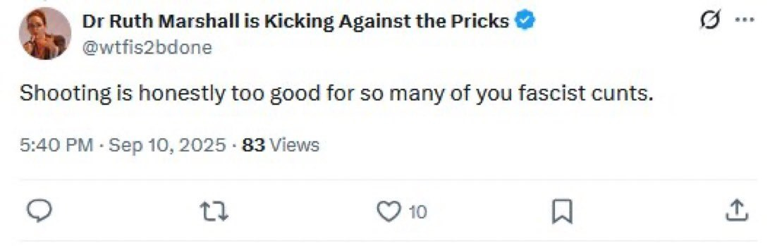 I just discussed the murder of Charlie Kirk with Trish Wood, and you can listen to that long discussion here. If you don’t have time to listen to the whole thing, I think the discussion between the 42-minute mark and about 48 minutes is the heart of it: the use of “Hitler Hitler Hitler” rhetoric to delegitimize disagreement, narrow the channels in which democratic pluralism can thrive, and lay the foundation for state repression of differing views. You people are FASCISTS, so we have to crush you and prevent you from speaking and arrest your leading political figures, and oh by the way you people deserve to be shot. Hate has no home here, so all of you Nazis should be killed.